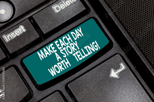Conceptual hand writing showing Make Each Day A Story Worth Telling. Business photo text Try to have inspiration everyday Keyboard key Intention to create computer message idea