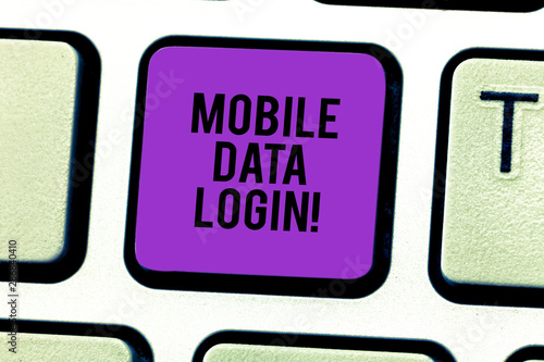 Conceptual hand writing showing Mobile Data Login. Business photo showcasing allows smartphone users to access internet without WiFi Keyboard key Intention to create computer message idea