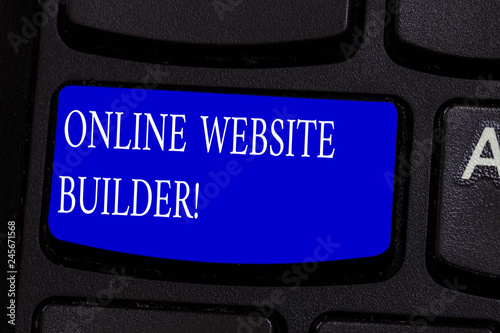 Conceptual hand writing showing Online Website Builder. Business photo text Program or tool that help you construct a website Keyboard key Intention to create computer message idea