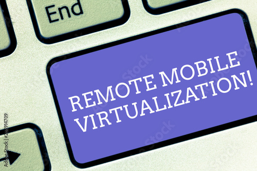 Conceptual hand writing showing Remote Mobile Virtualization. Business photo text can remotely control an Android virtual machine Keyboard key Intention to create computer message idea