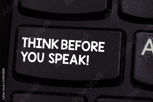 Conceptual hand writing showing Think Before You Speak. Business photo showcasing Consider what you are going to say before do it Keyboard key Intention to create computer message idea