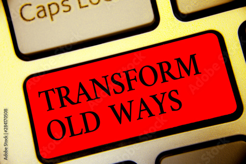 Conceptual hand writing showing Transform Old Ways. Business photo text replace it with new methods Alternatives new solution Symbol computer idea script capital typing keyboard input button