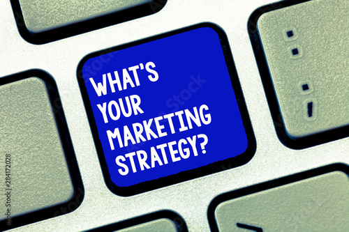Conceptual hand writing showing What S Is Your Marketing Strategyquestion. Business photo showcasing Establish your advertising plan Keyboard Intention to create computer message keypad idea
