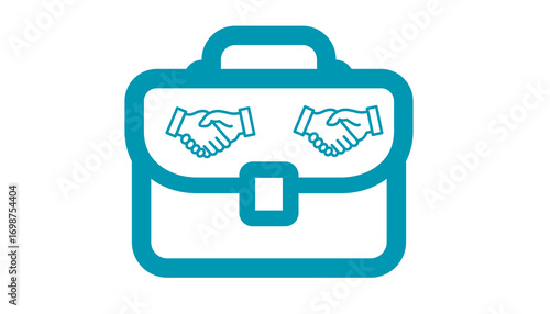 Conceptual icon of a business partnership agreement represented by a briefcase with handshake symbols, symbolizing corporate deals and collaboration