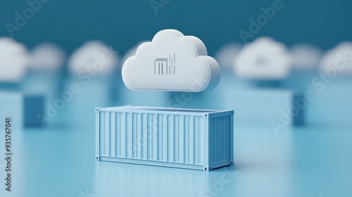Conceptual image of cloud computing with a blue container. Symbolizes data storage, digital technology, and modern cloud solutions.