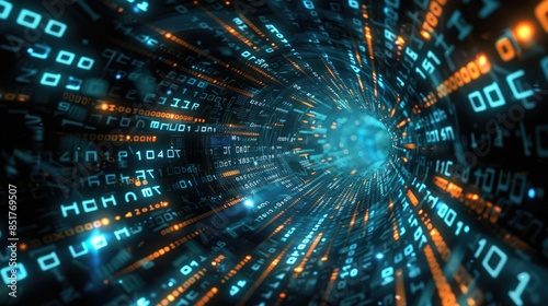 Conceptual image of digital transformation with binary digits and networked systems