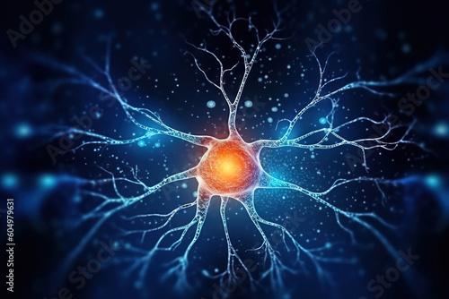 conceptual neuron with blue background - electric impulses