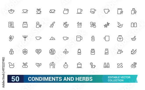 condiments and herbs icons set, Spices, minimal thin line web icon set. Minimalis line symble collections, ui icon set, Outline icons collection. Simple vector illustration.