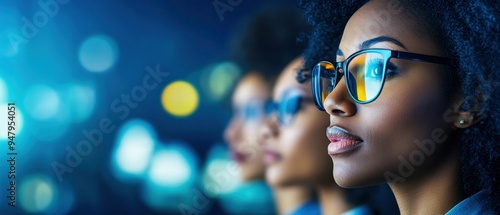 Confident Woman Wearing Glasses in Futuristic Environment
