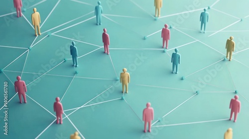 Connected figures on teal background