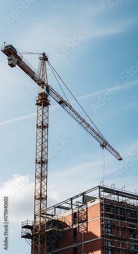 Construction Crane Over Building Under Construction.