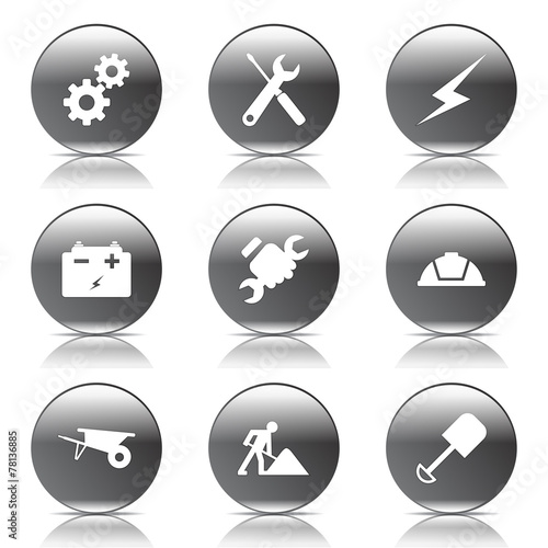 Construction Tools Black Vector Button Icon Design Set