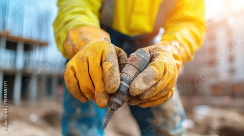 Construction Worker Hands Holding a Drill