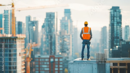 Construction Worker Looking at Cityscape