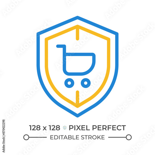 Consumer law two color line icon. Protect customers rights. Client service regulation rules. Legal program bicolor outline symbol. Duotone linear pictogram. Isolated illustration. Editable stroke