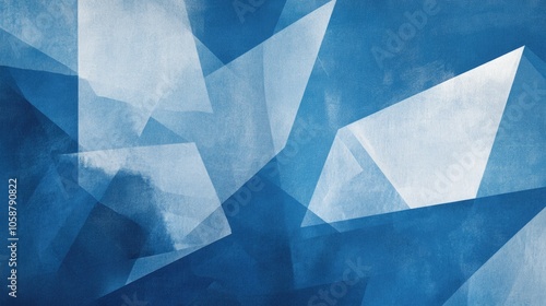 Contemporary abstract design featuring a blue backdrop with white rhombus shaped elements