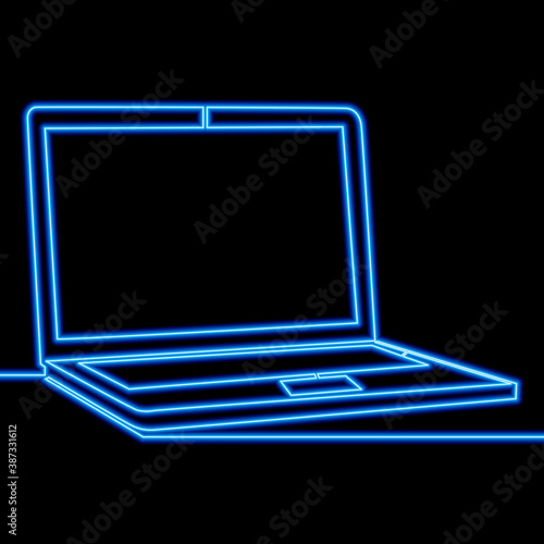 Continuous line Laptop computer neon concept