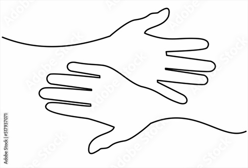 Continuous one line drawing. Abstract hands togehter. Vector illustration