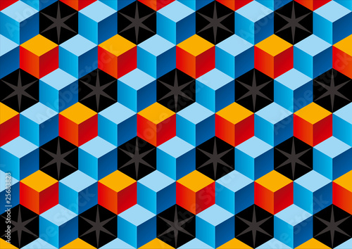 Contrast colores child bricks 3D pattern with stars. Vector Illu