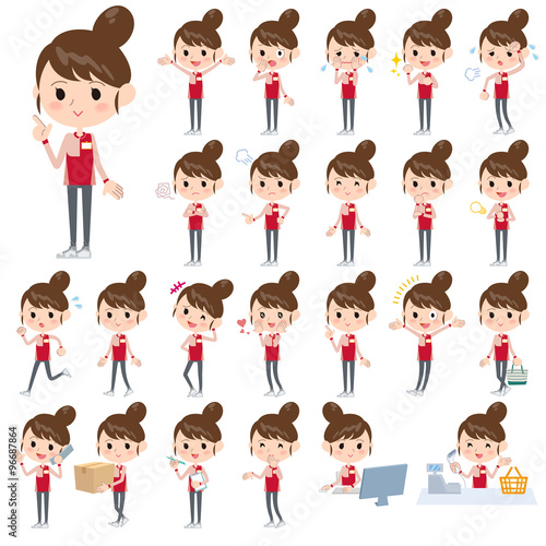 Convenience store red uniforms women