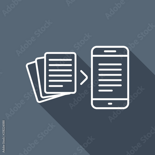 Convert to electronic document. White flat icon with long shadow