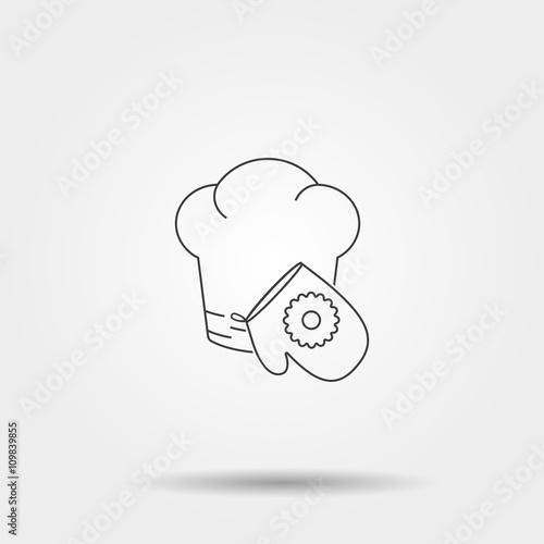 Cook hat and potholder thin line icon