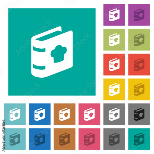 Cookbook with chef hat square flat multi colored icons