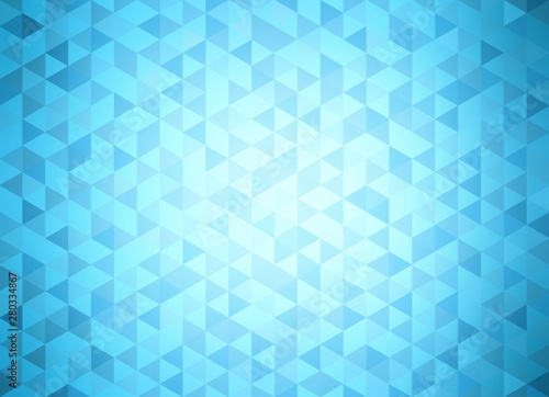 Cool triangular abstract background. Bright blue crystal mosaic vignette pattern.
