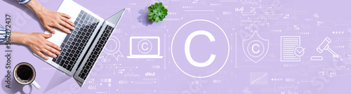 Copyright concept with person using a laptop computer