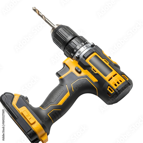 Cordless power drill with a drill bit, isolated on transparent background