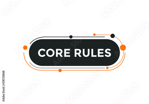 Core rules text button. Core rules speech bubble. Core rules sign icon.
