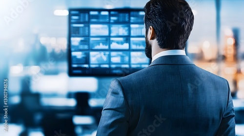 Corporate Executive Presenting Financial Data on Holographic Screen in Futuristic Office