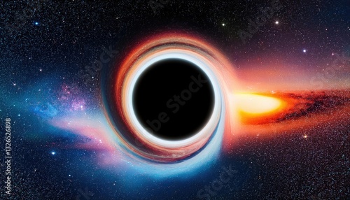 cosmic black hole surrounded by vibrant galaxy and colorful nebulae in deep space