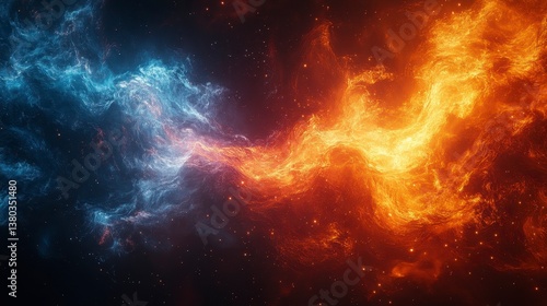 Cosmic clash Fire meets ice. Swirling nebula of blues and reds against a starry canvas