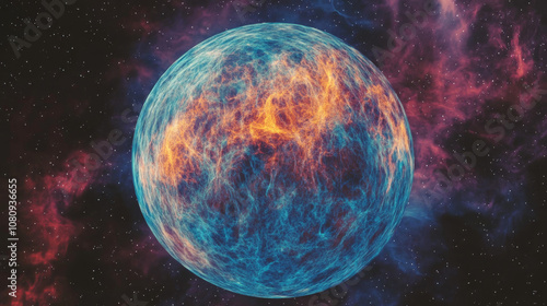 Cosmic Nebula Planet: Fiery Plasma, Celestial Background, 3D Render