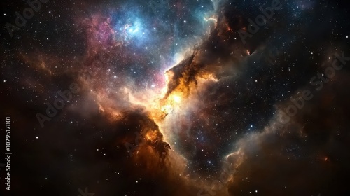 Cosmic nebula: realistic space scene for digital media and science education