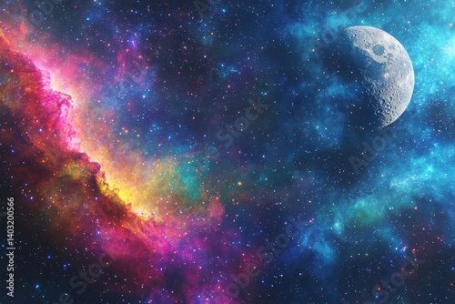 Cosmic nebula with crescent moon