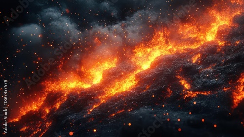 Cosmic Nebula With Fiery Orange Glow and Tiny Sparkling Particles Set Against a Dark Starry Sky