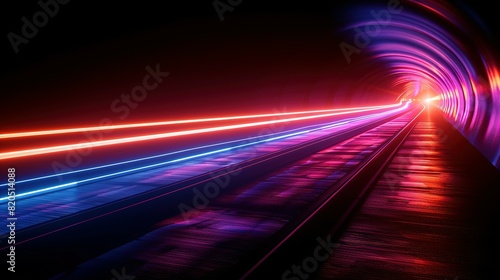 Cosmic Trails: 3D Rendering of Blue-Purple Light in Space Warp