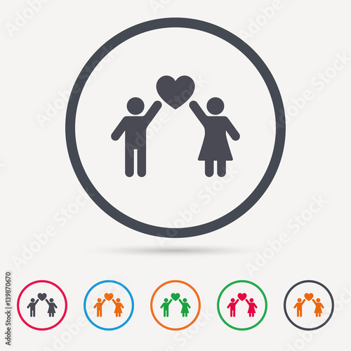 Couple love icon. Traditional young family symbol. Round circle buttons. Colored flat web icons. Vector