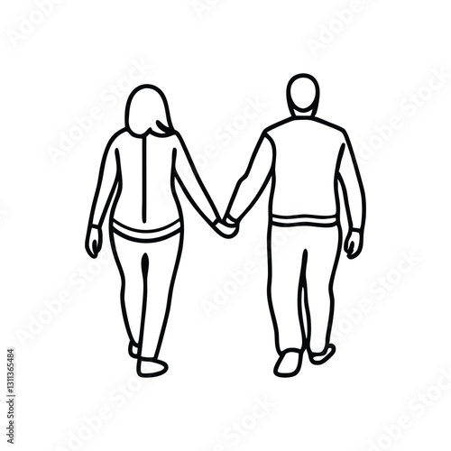 Couple walking hand in hand line art flat vector illustration