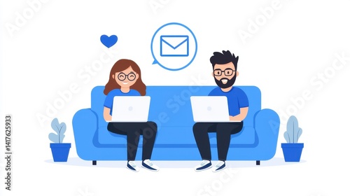 Couple Working Remotely on Laptops, Email