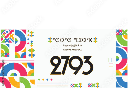 cover with modern geometric abstract background in retro style. happy new year greeting card banner design for 2023 calligraphy includes colorful shapes. Vector illustration AMAZIGH NEW YEAR