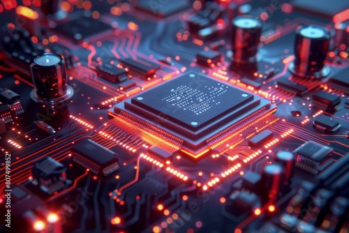 CPU processor microchip circuit board illustration created with generative ai