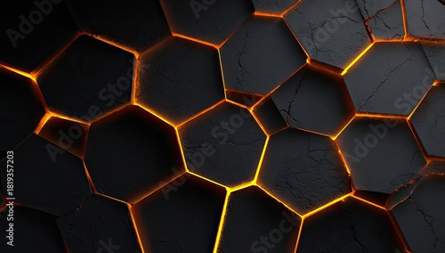 Cracked dark polygonal surface with glowing orange seams