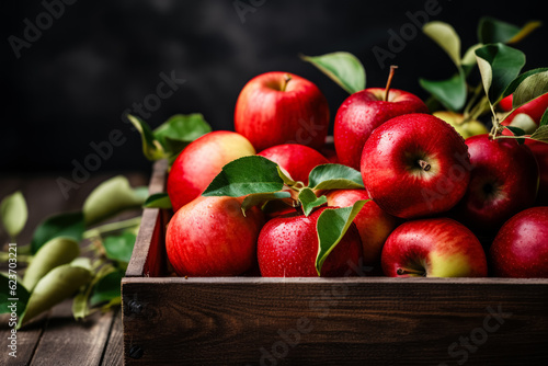Crate with harvested red apples