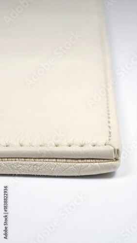 Cream leather book corner, close view