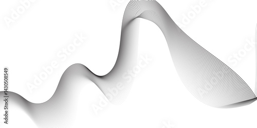 Create a vector illustration of a black abstract wave pattern on a white background. The wave should have a smooth, flowing form with overlapping transparent lines and gradient mesh effects, creating