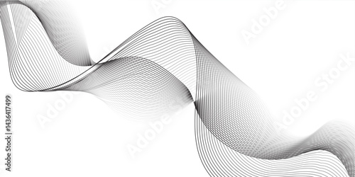 Create a vector illustration of a black abstract wave pattern on a white background. The wave should have a smooth, flowing form with overlapping transparent lines and gradient mesh effects, creating