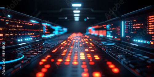 Creative binary coding texture. Software programming code. 3D Rendering.